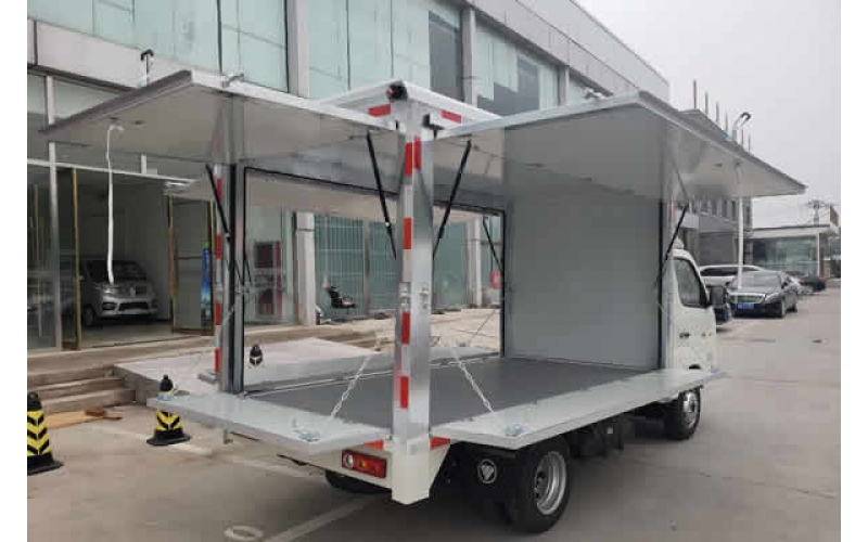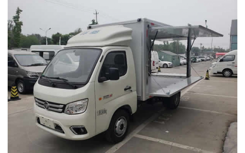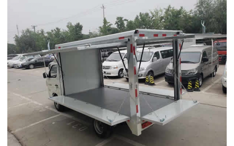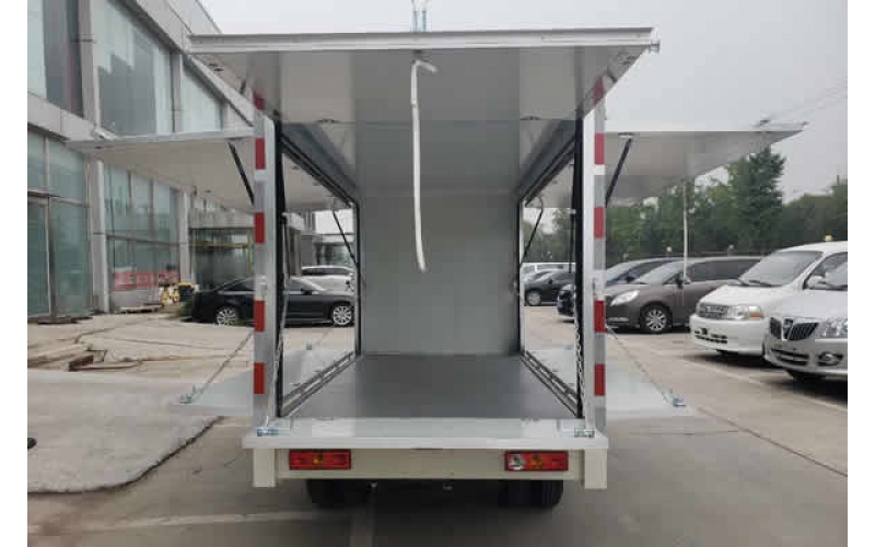 祥菱翼展地?cái)傑嚭竺鎿醢迨掌饋頃r(shí)候外觀和普通的貨車相比沒有太多的區(qū)別。但是可折疊的門板里面暗藏玄機(jī)。