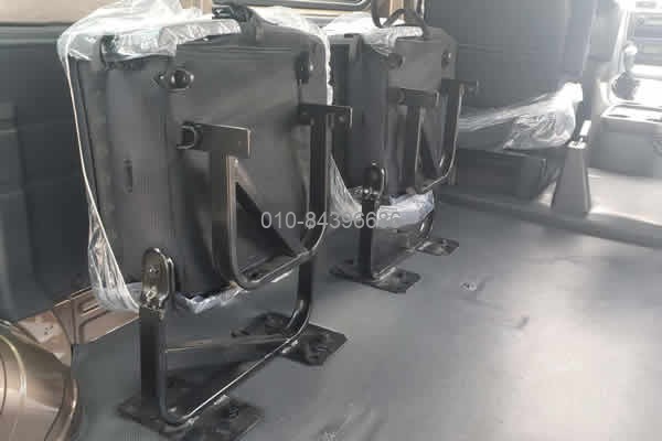 車輛在做多功能使用的時候可以將車輛的座椅進(jìn)行側(cè)翻并懸掛與車輛的一側(cè)。